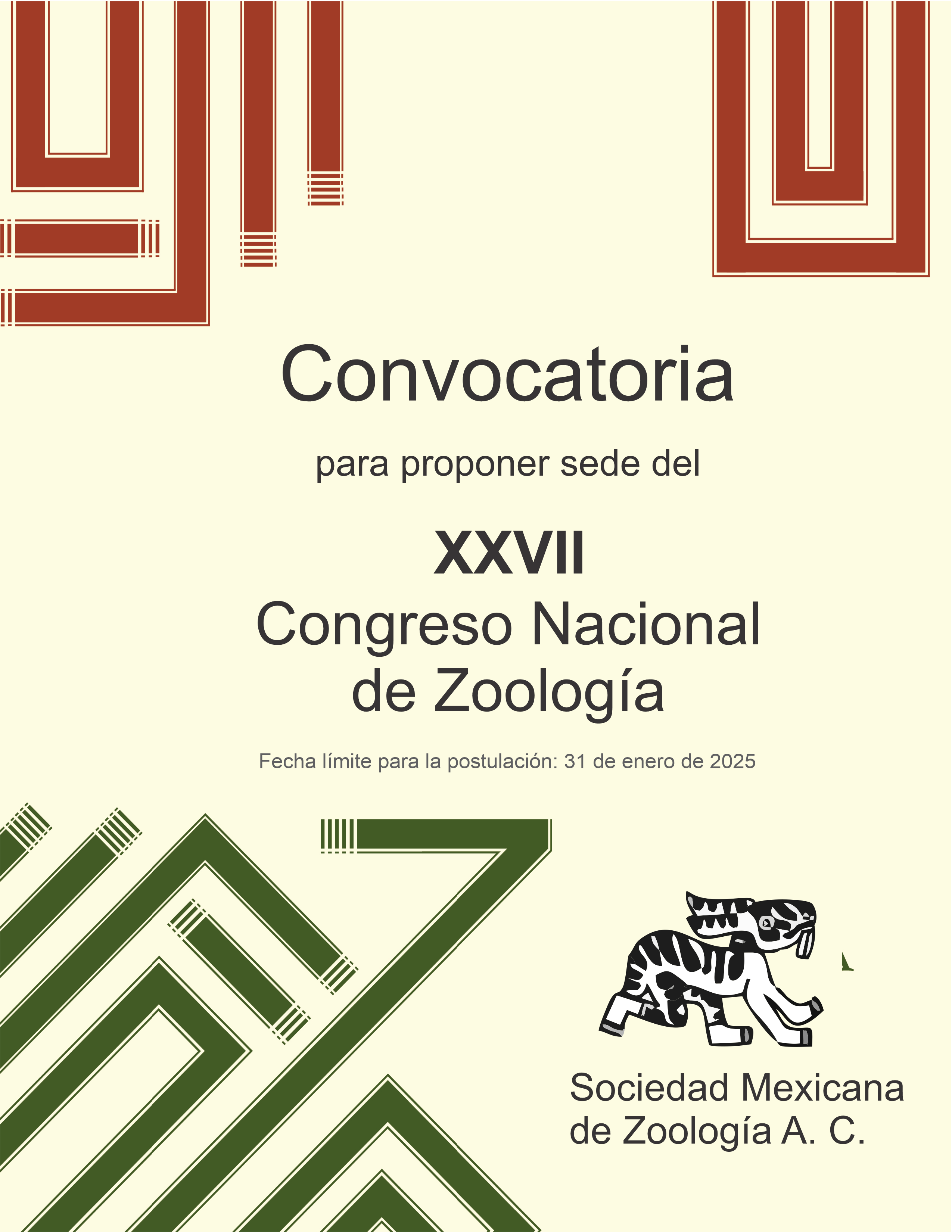 La Sociedad Mexicana de Zoología (SOMEXZOOL) invita a las institucionesde educación superior interesadas a postularse como sede para el próximo XXVII Congreso Nacional de Zoología,evento académico que reunirá a destacados investigadores, profesionales,estudiantes y especialistas en zoología.